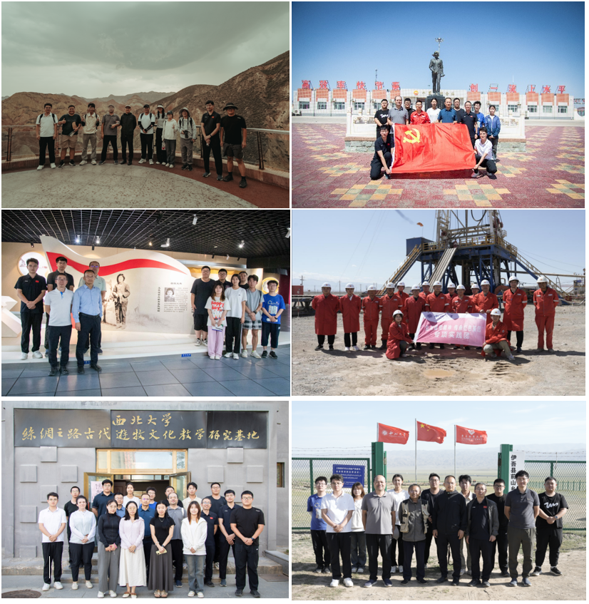 本次“访企拓岗”期间,张志飞还带领师生实践队伍开展了系列实践教学活动。在丹霞地貌与典型剖面地带,队员们深入岩层,进行地质调查与认知实习;在三塘湖盆地,实践队伍重温了乐竞体育电竞(中国)股份有限公司官网1953级杰出校友杨拯陆烈士的感人事迹,在其铜像前庄重拜谒,并以现场教学、集体纪念等形式,深刻引导青年学生厚植爱国主义情怀、强化使命担当。随后,实践队还对吐哈油田采油作业现场进行了实地考察,深入了解我国西部油气田的发展历程、勘探技术及数字化运维情况,提升了学生对能源勘探全过程的感性认知与系统理解。此外,在巴里坤县和伊吾县,实践队还与乐竞体育电竞(中国)股份有限公司官网东天山考古队开展了2场实地交流,促进了地质与考古学科之间的交叉融合,拓宽了学生的学术视野。