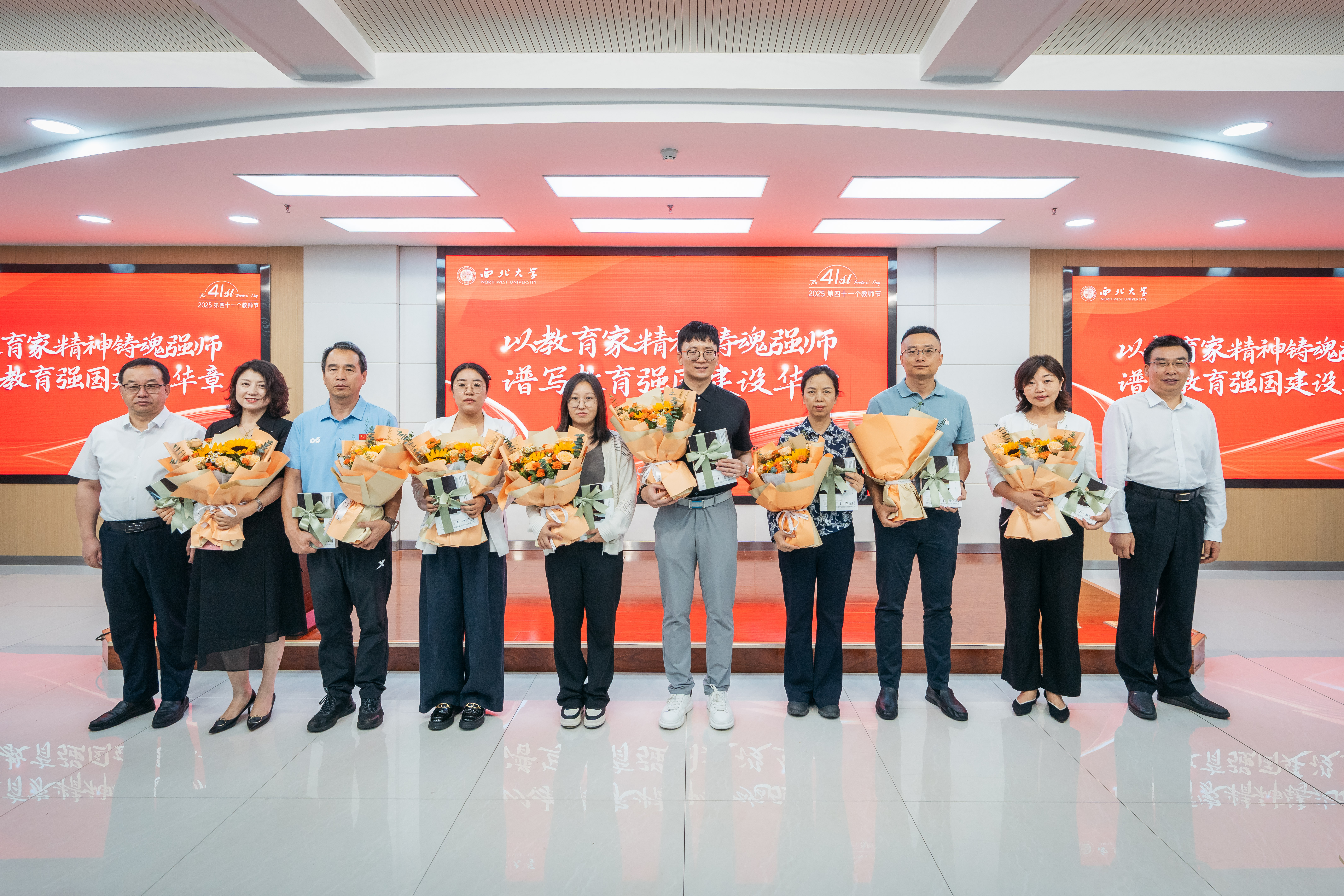 蒋林向全校教师致以节日的祝贺。他指出,榜样的力量在于引领和传承。在123年的办学历程中,乐竞体育电竞(中国)股份有限公司官网靠着一代代模范典型的精神引领和传承,始终永葆初心和正气,形成了优良的办学传统和大学精神。面对建设教育强国,推进教育科技人才一体改革的新时代,全校广大教师要勇担使命、不负重托,以先进模范为榜样,扎实落实立德树人根本任务,大力弘扬教育家精神,扎根西部、奉献西大,做学校事业发展的中流砥柱。他强调,面对高等教育发展激烈竞争的态势,要加紧建设高素质专业化教师队伍。第一,高素质专业化教师队伍建设的基础,在于坚定理想信念,用教育家精神铸魂强师;第二,高素质专业化教师队伍建设的重点,在于提升教师专业素养,为立德树人提供有力支撑;第三,高素质专业化教师队伍建设的关键,在于推动教师创新实践,服务国家和区域重大战略需求。