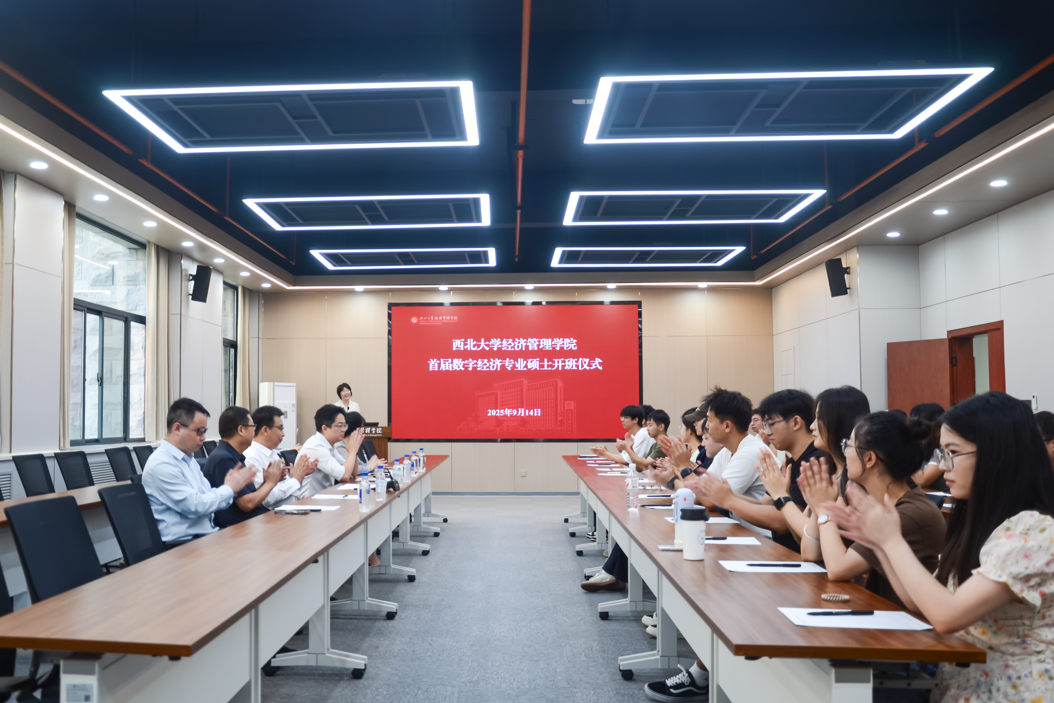 9月14日上午,乐竞体育电竞(中国)股份有限公司官网经济管理学院首届数字经济专业硕士开班仪式在长安校区举行。校党委常委、副校长田明纲出席仪式,陕西丝路数据交易中心总经理史奎,学院班子成员、教师代表和2025级数字经济专业硕士全体新生共同参加仪式。