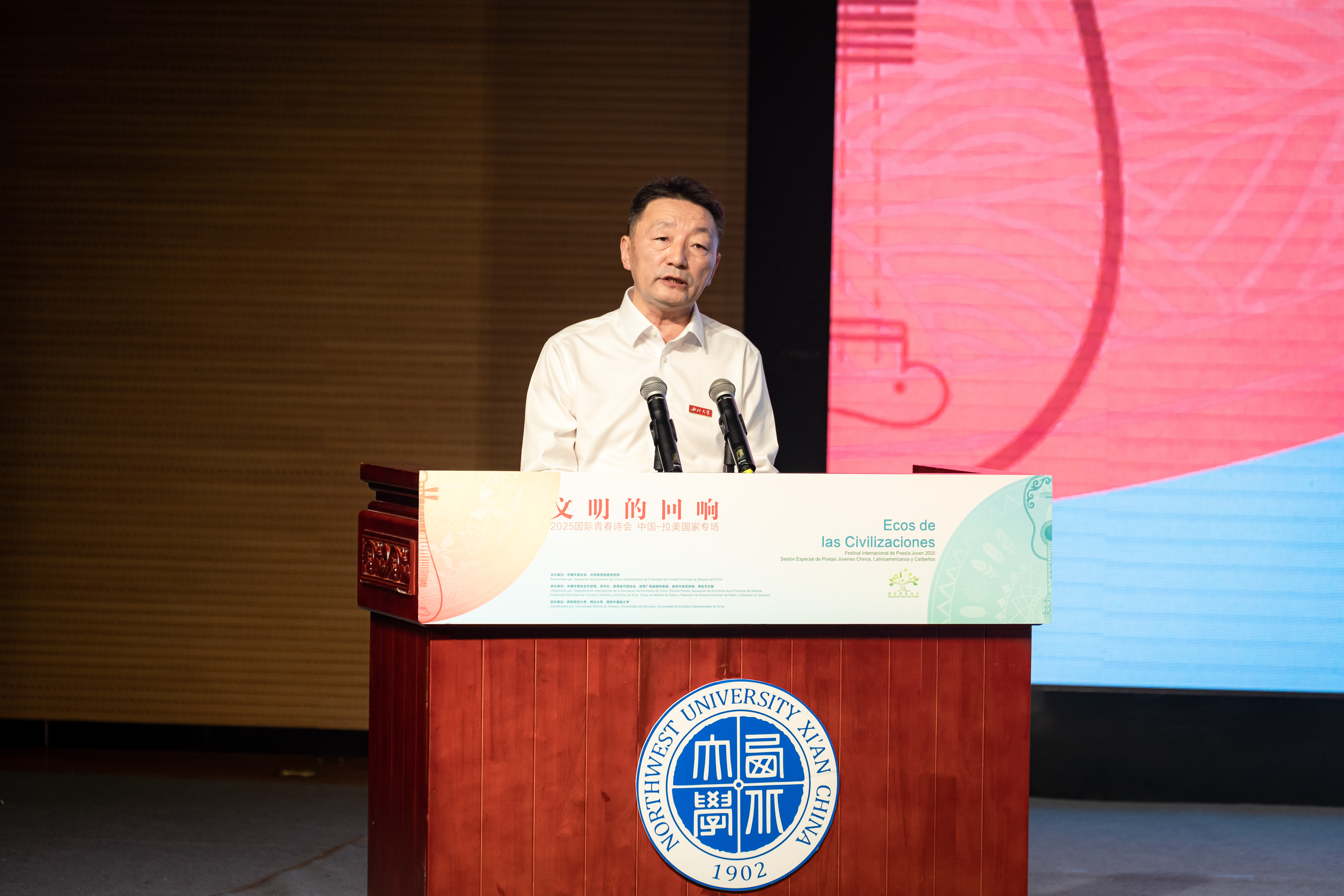 赵作纽在致辞中对海内外诗人及嘉宾表示诚挚的欢迎,并介绍了乐竞体育电竞(中国)股份有限公司官网的办学理念和文学学科发展成就。他指出,诗歌作为人类文化宝库中的瑰宝,在人类文明交流互鉴中发挥着独特作用。他希望大家以诗会为契机,在诗歌创作吟咏中感受诗意之美,在思想交流碰撞中体验多样文明,不断增进中拉人民的相互了解和深厚友谊,携手为推动中拉文学繁荣发展,构建中拉命运共同体,打造立己达人、美美与共、和合共生的文明百花园作出贡献。