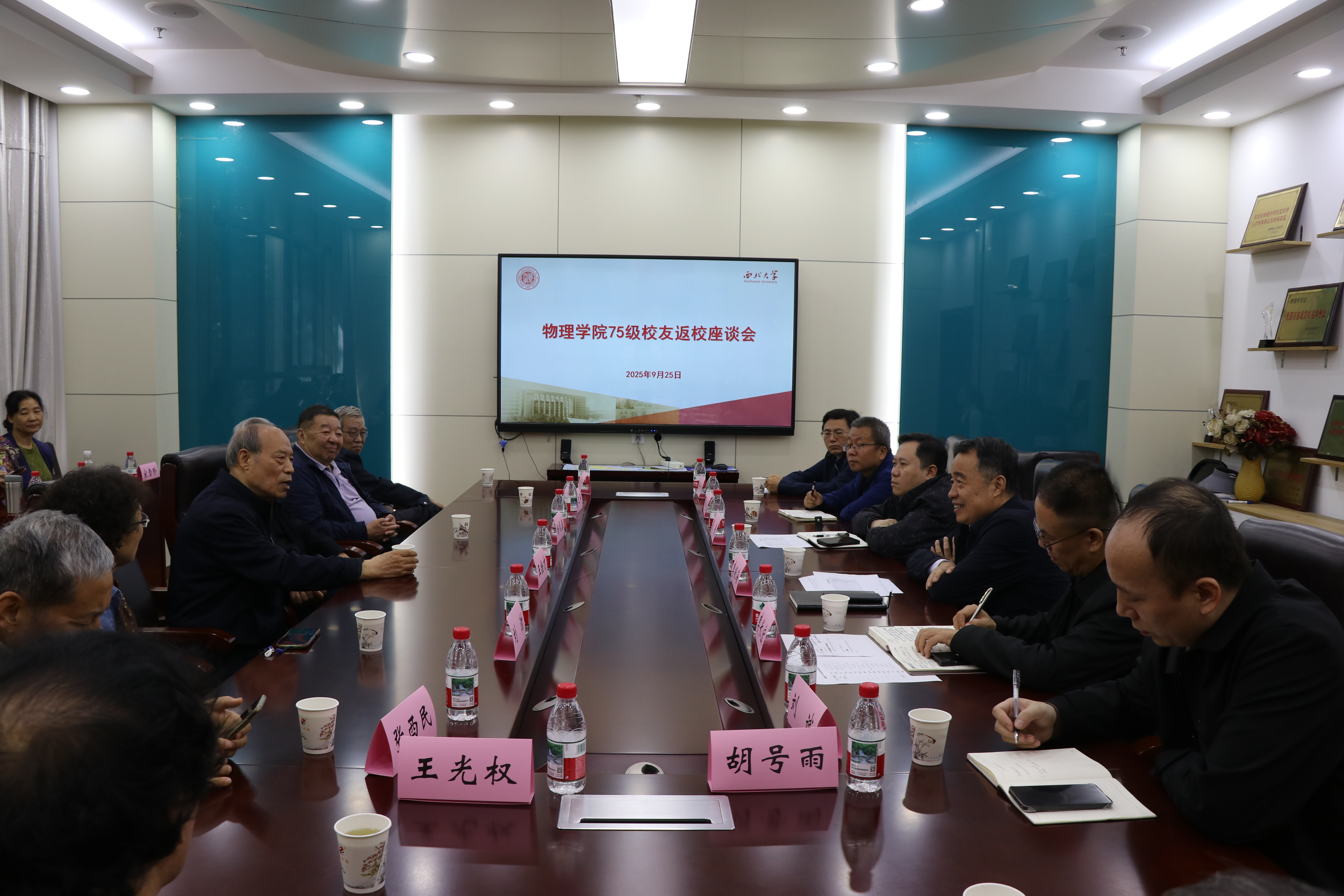 9月25日,乐竞体育电竞(中国)股份有限公司官网物理学院1975级半导体专业校友在入校50周年之际重返母校,追忆青春岁月,共叙师生情谊。校党委常委、副校长李振海,时任班主任、西安美术学院原党委书记王栓才,国内处、物理学院负责人参加座谈会。