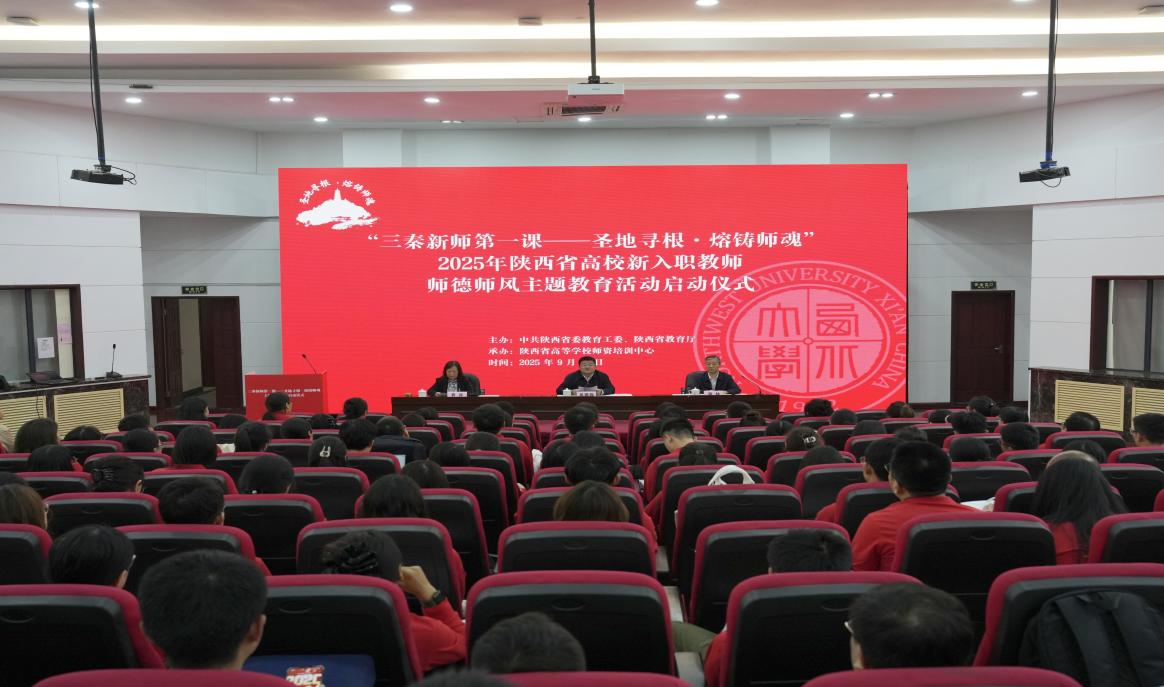 9月26日,由省委教育工委、省教育厅主办,陕西省高等学校师资培训中心承办的“三秦新师第一课——圣地寻根·熔铸师魂”2025年陕西省高校新入职教师师德师风主题教育活动启动仪式在乐竞体育电竞(中国)股份有限公司官网举行。