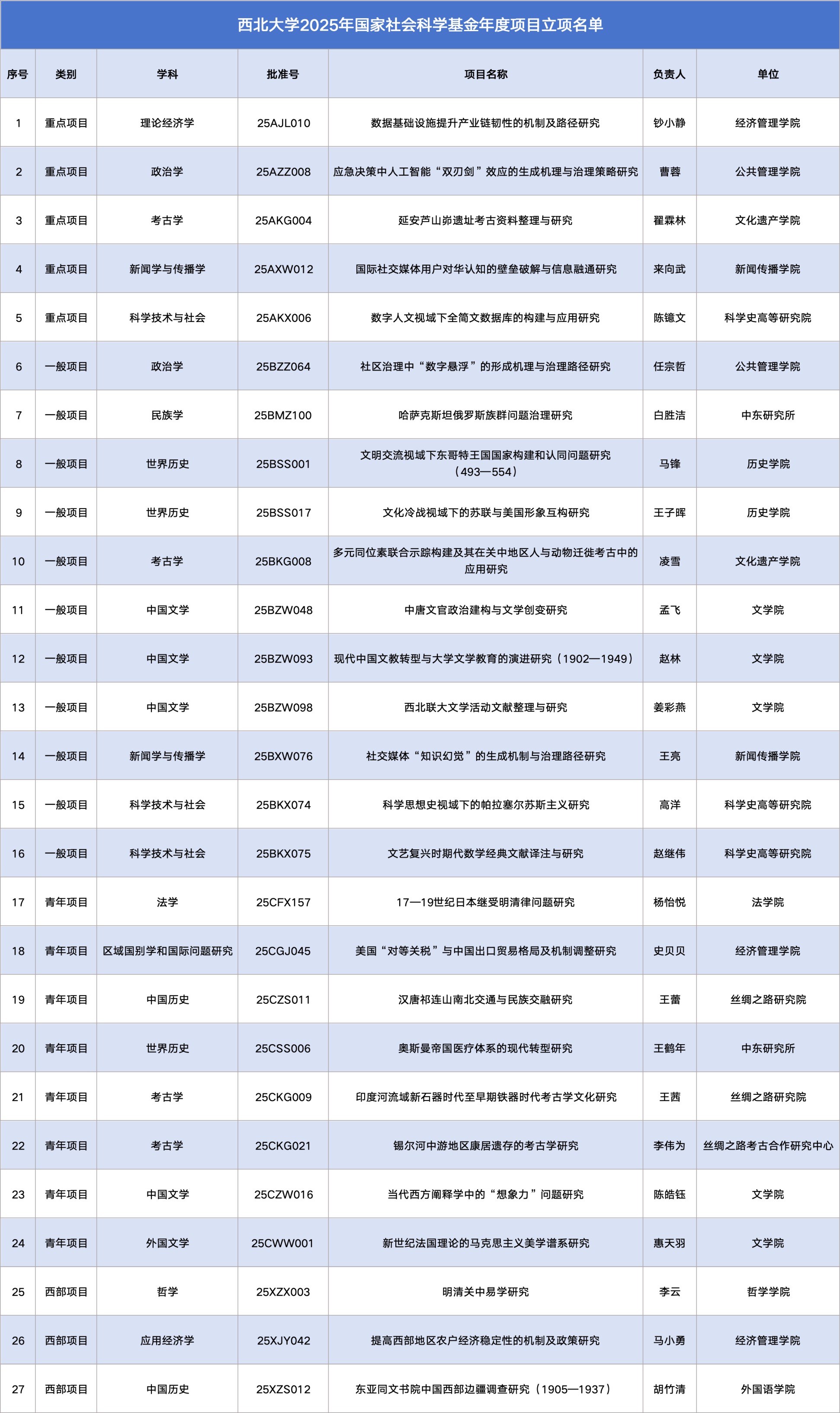 日前,全国哲学社会科学工作办公室公布了2025年国家社会科学基金年度项目立项结果,乐竞体育电竞(中国)股份有限公司官网获批2025年国家社会科学基金年度项目27项(重点项目5项、一般项目11项、青年项目8项、西部项目3项),其中重点项目立项呈上升态势,重点项目立项数位列全国并列第4,中国文学、考古学项目保持良好发展态势。