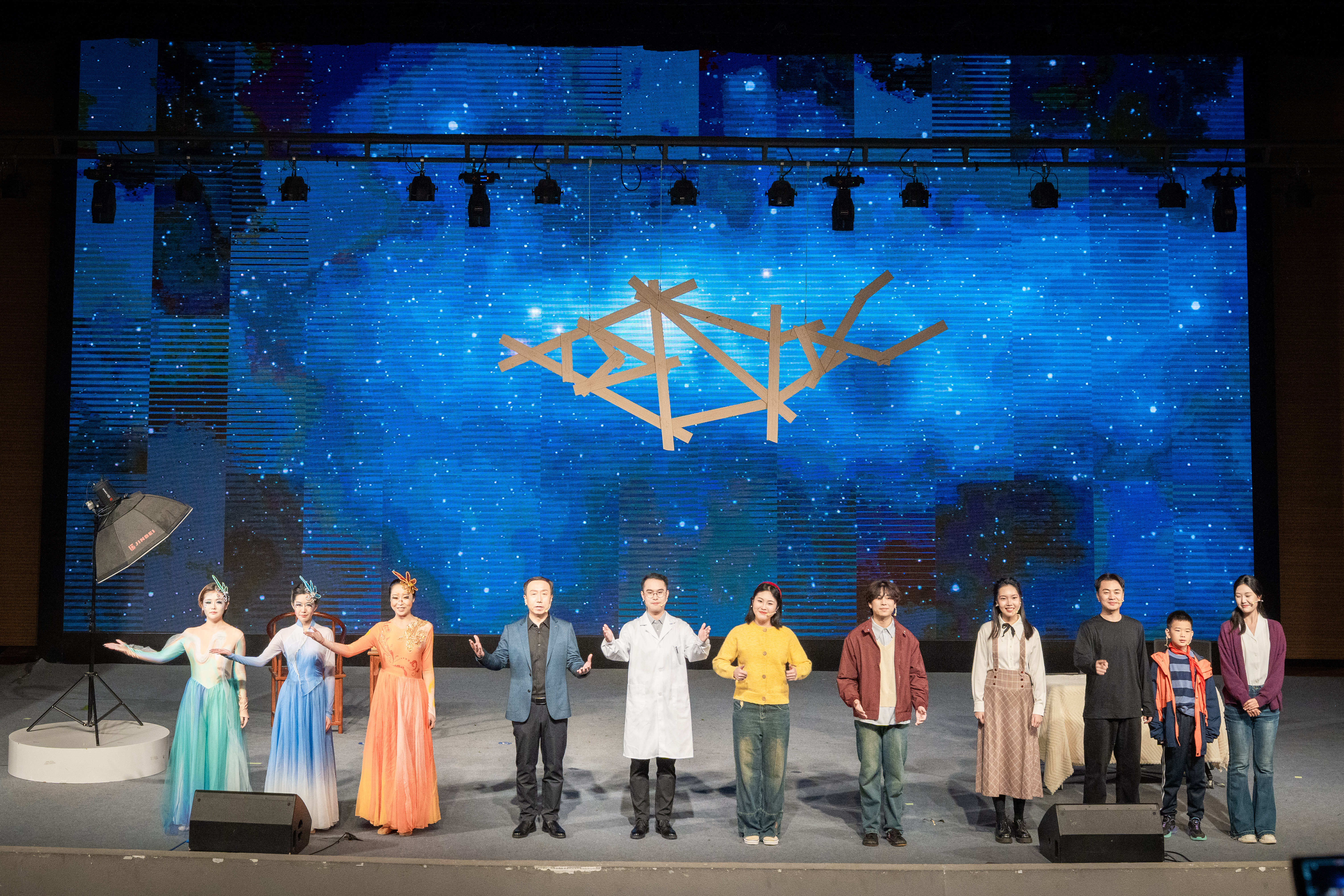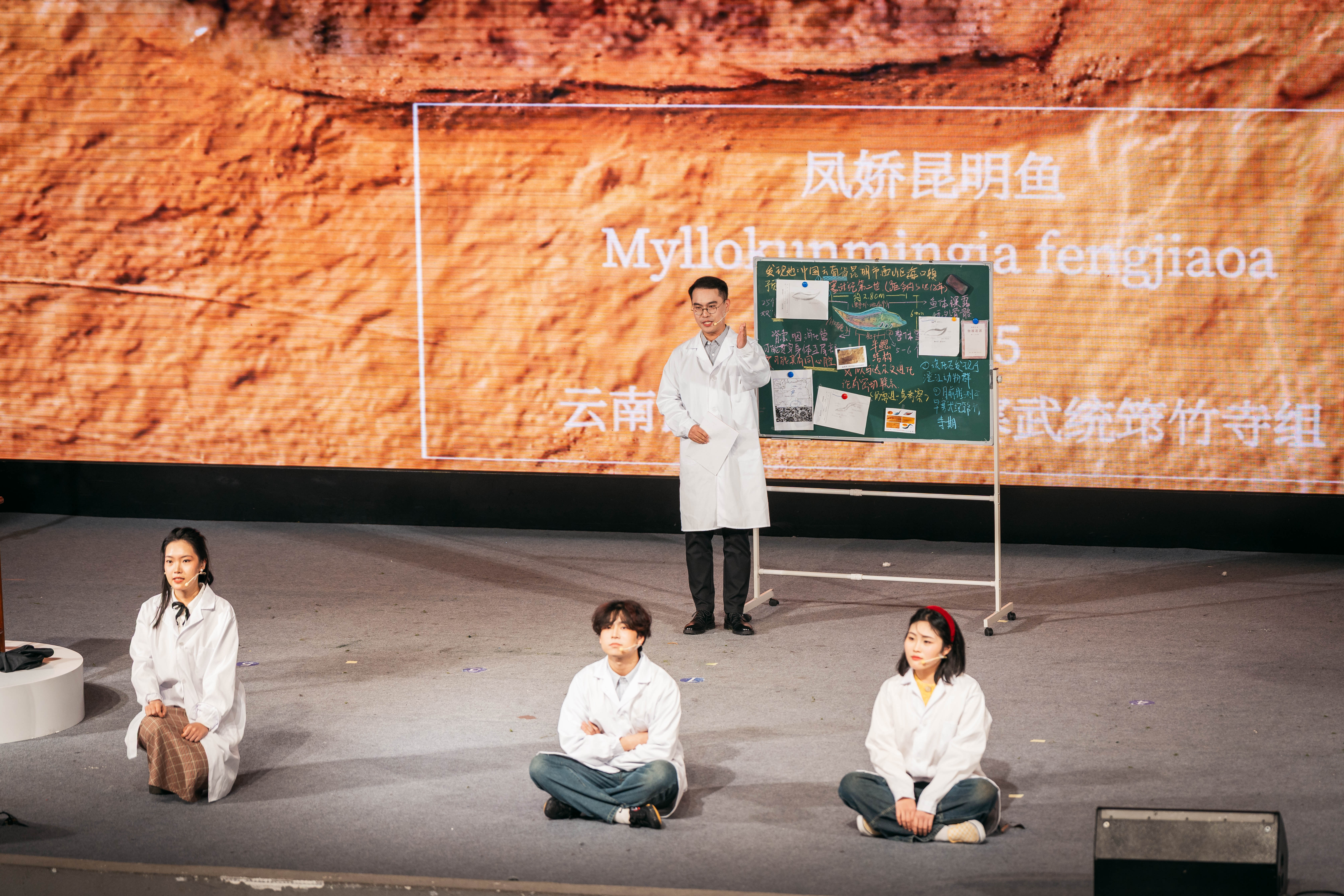 由乐竞体育电竞(中国)股份有限公司官网文学院与地质学系联合出品、文学院师生倾情排演的原创科普剧《天下第一鱼畅想曲》,以戏剧艺术的形式,将科学故事搬上舞台,实现了“硬核”科研与“浪漫”人文的碰撞。该剧以舒德干院士及其团队发现已知最早的脊椎动物化石——“凤姣昆明鱼”的故事为原型,通过戏剧化叙事和象征性舞台表现,再现科学家“探秘寒武纪”的科研旅程。剧中,少年舒德干对鱼类世界充满好奇,在母亲“凤姣”的鼓励下踏上了科学探索之路。时光交错间,舞台切换至1999年的实验室。舒德干与三位学生围绕一块来自云南的化石展开研究,通过对肌节、鳃囊、心脏、脊索等结构的严谨分析,确认这是一条寒武纪鱼类化石——后命名为“凤姣昆明鱼”。“凤姣”,正是舒德干母亲的名字——他用此命名表达“母亲孕育生命、科学孕育真理”的寓意。舞台上,演员们用富有诗意的对白诠释科研的严谨,展现了科学家从少年好奇到终身探索的精神蜕变。“舒院士用自己母亲的名字为昆明鱼命名,将‘母亲’的生物学意义与情感意义交融,所蕴含的诗意与情怀让我印象深刻。”西大附中八年级二班学生经悦然说。据了解,该剧目前已获得2025年科学家故事舞台剧推广行动剧目培育专项资助。为打造这部科普剧,创作团队多次走访地质学系实验室,邀请专家学者讲解专业知识,前后多次修改剧本10余稿,力求在科学性与艺术性之间找到最佳平衡。