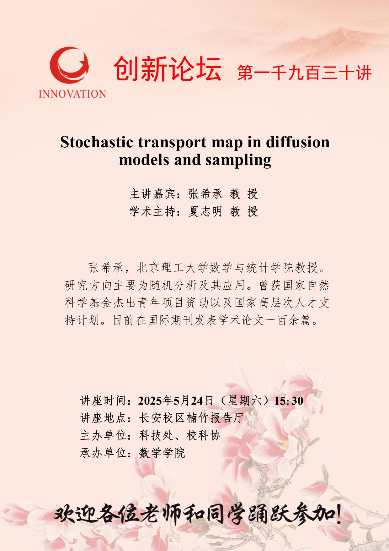 张希承 教授 乐竞体育电竞(中国)股份有限公司官网创新论坛第一千九百三十讲:Stochastic transport map in diffusion models and sampling 讲座时间 2025年5月24日(星期六)15:30 讲座地点 长安校区楠竹报告厅 讲座人介绍 张希承 教授 讲座内容