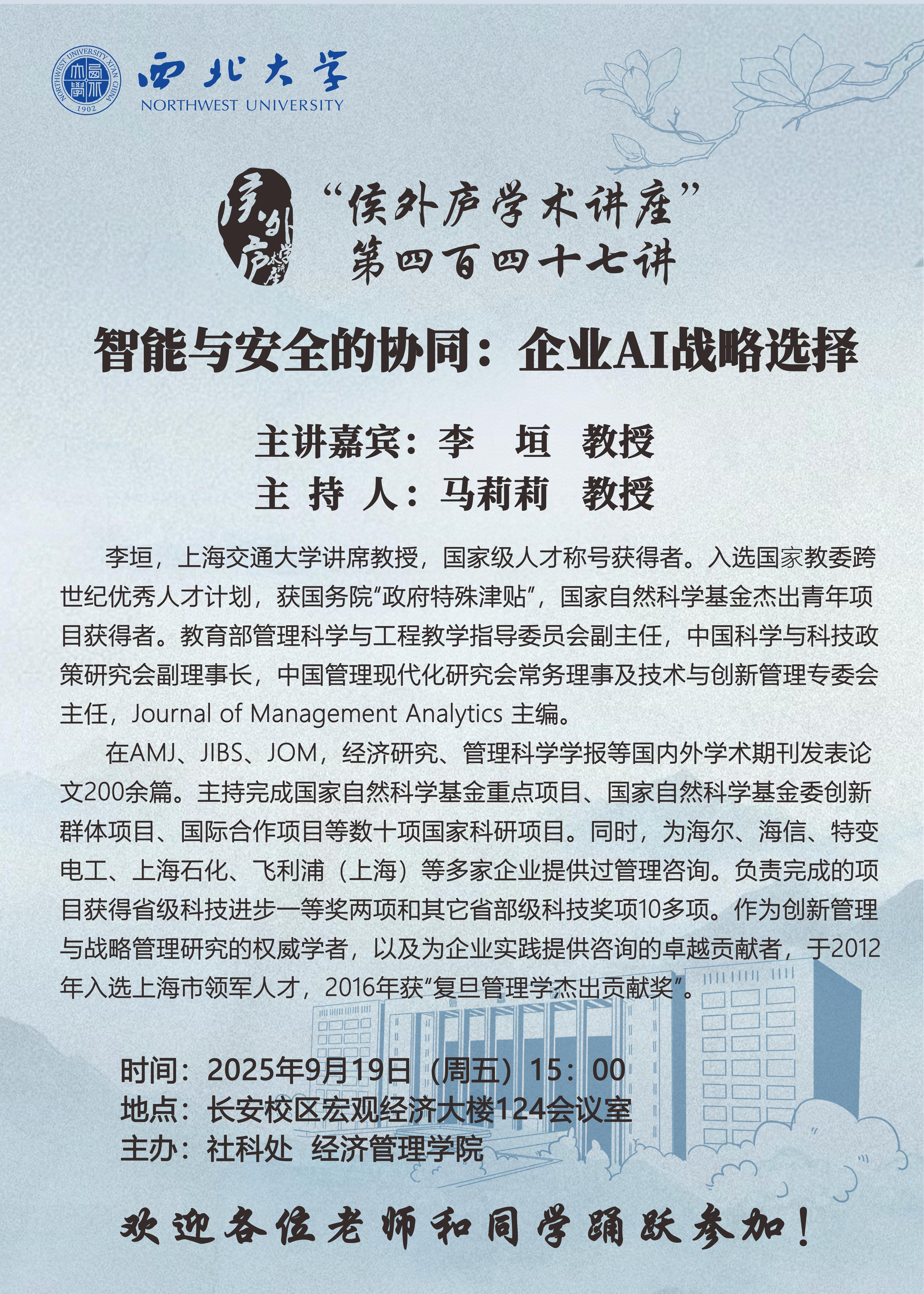 “侯外庐学术讲座”第四百四十七讲:智能与安全的协同:企业AI战略选择