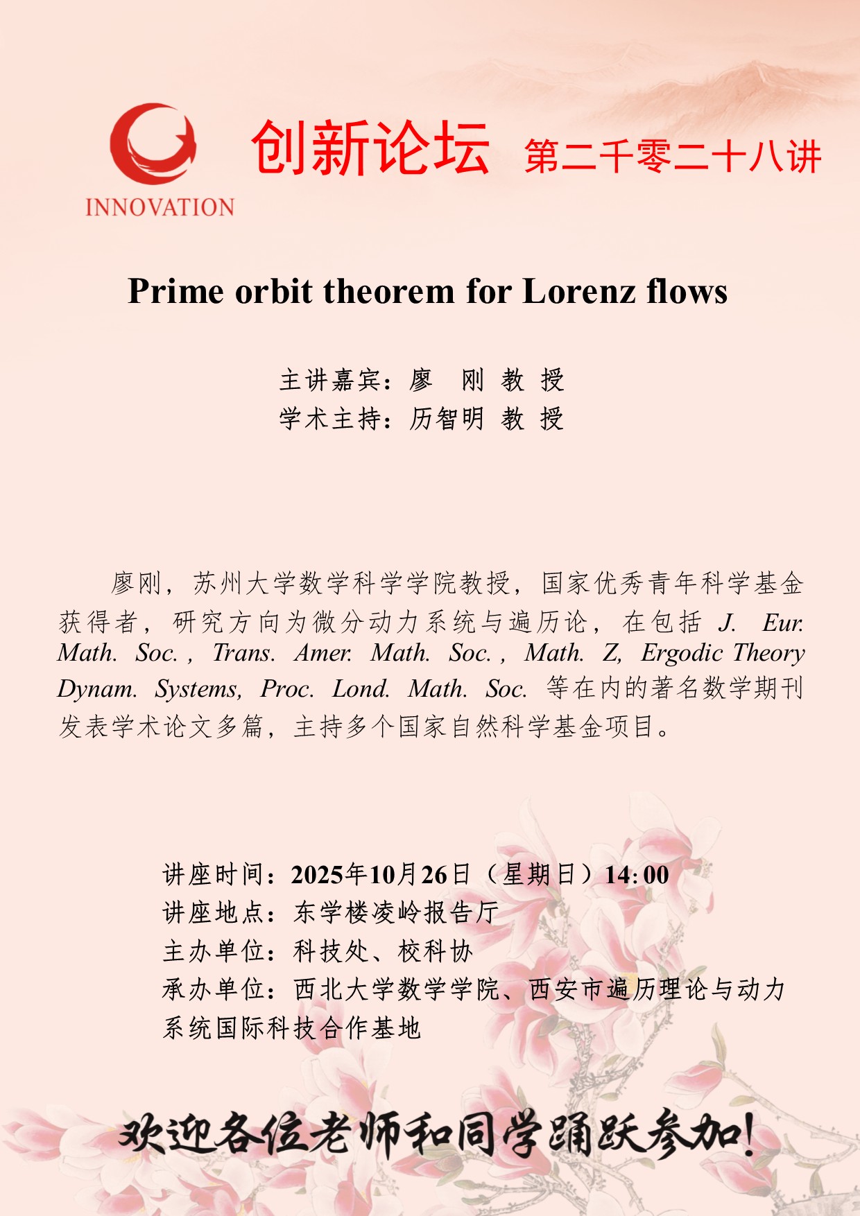 廖 刚 教 授 乐竞体育电竞(中国)股份有限公司官网创新论坛第二千零二十八讲:Prime orbit theorem for Lorenz flows 讲座时间 2025年10月26日(星期日)14:00 讲座地点 东学楼凌岭报告厅 讲座人介绍 廖 刚 教 授 讲座内容