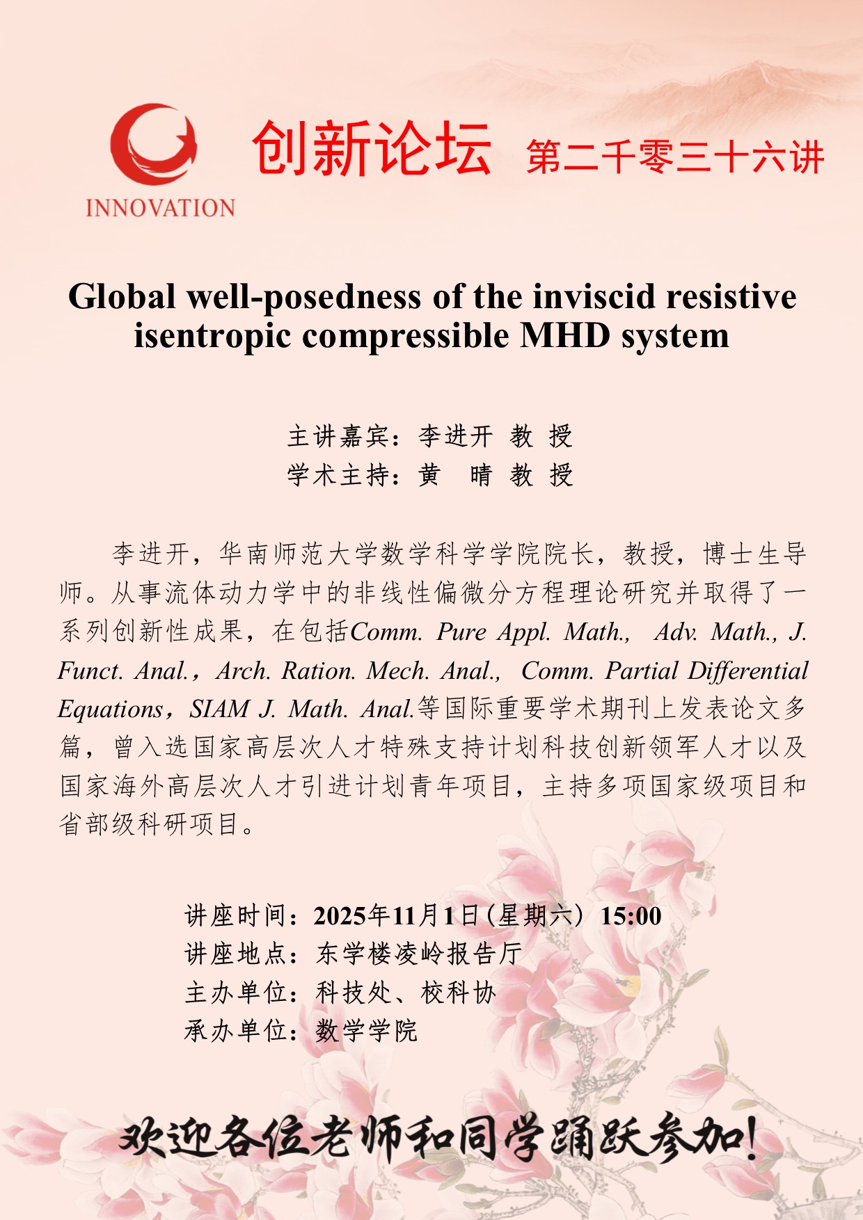 < 上一篇乐竞体育电竞(中国)股份有限公司官网创新论坛第二千零三十七讲:Global well-posedness of inviscid  resistive plasma interface waves