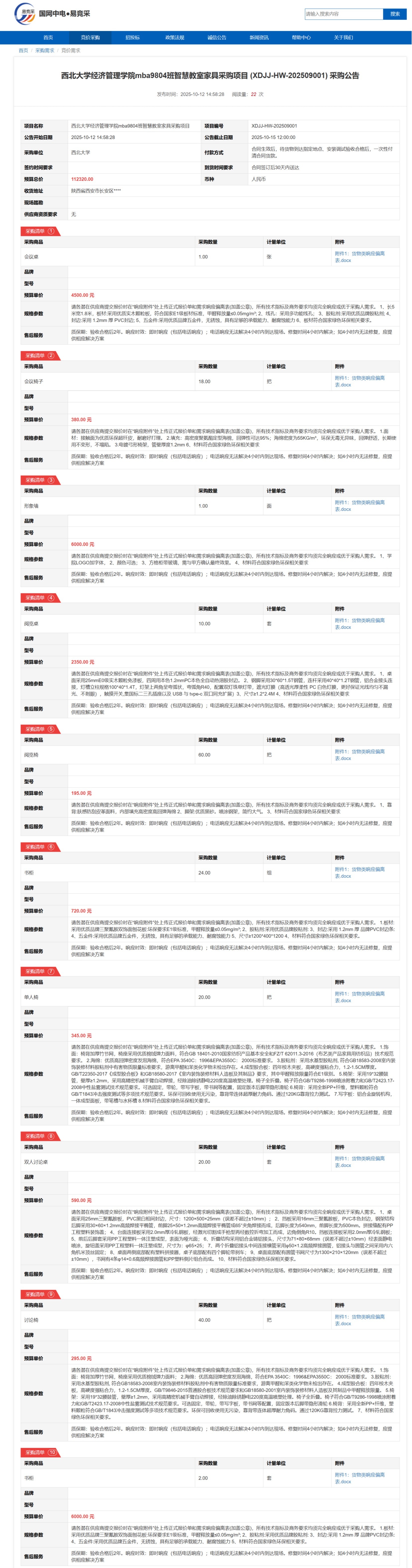乐竞体育电竞(中国)股份有限公司官网经济管理学院mba9804班智慧教室家具采购项目(XDJJ-HW-202509001)竞价采购公告