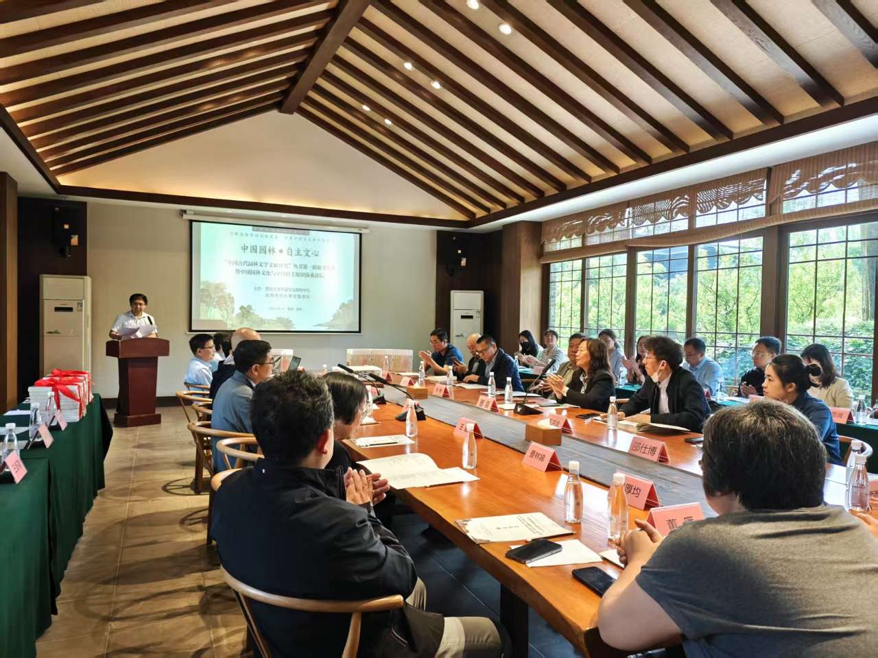 会议第三阶段为项目工作推进会,国家图书馆副研究馆员马学良介绍了园林文献影印出版工作的进展情况,“中国古代园林文学文献整理与研究”项目五个子课题组负责人分别介绍了各组工作的进展、遇到的问题等。“中国古代园林文学文献整理与研究”项目分为先秦至唐代、宋代、元明、清代、文献综合研究五个子项目开展工作,目前已进入后期,有望于2027年完成。