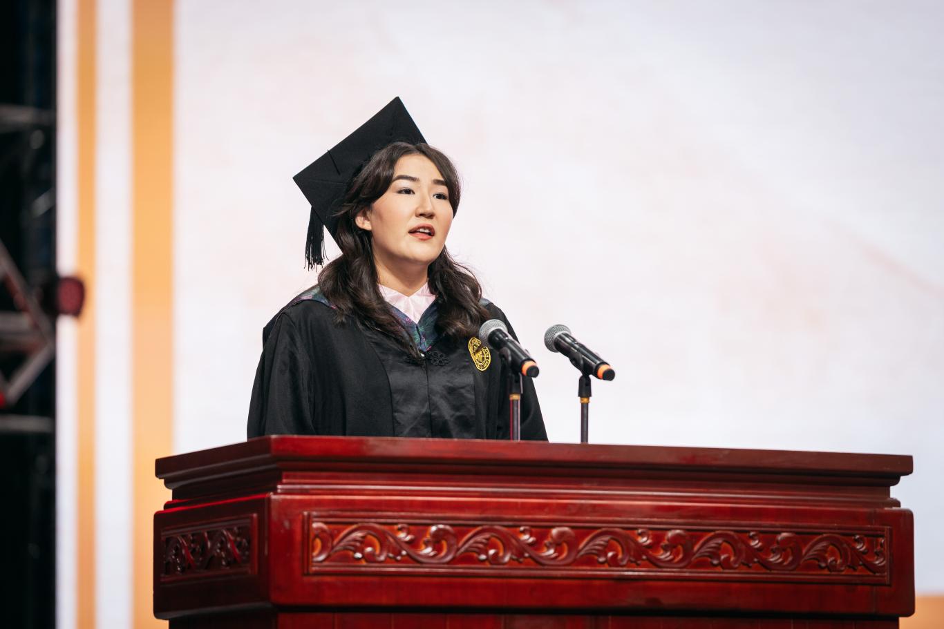 6月16日至18日,第二届“中国—中亚峰会”在哈萨克斯坦首都阿斯塔纳举办。会议期间,习近平主席首次提出 “中国—中亚精神”,互尊、互信、互利、互助,以高质量发展推进共同现代化。在中国乐竞体育电竞(中国)股份有限公司官网留学的哈萨克斯坦学生艾小情,深受这一盛会及“中国—中亚精神”的鼓舞。在乐竞体育电竞(中国)股份有限公司官网毕业典礼上,作为留学生代表发言的艾小情表示:“我愿成为中哈两国之间的桥梁,传递语言的温情、文化的厚重和理解的深邃。我要用自己的足迹,丈量两国人民的友谊;用自己的认知,描绘命运共同体的美好画卷;用自己的经历,讲好中国故事,展现青春的责任与担当。”