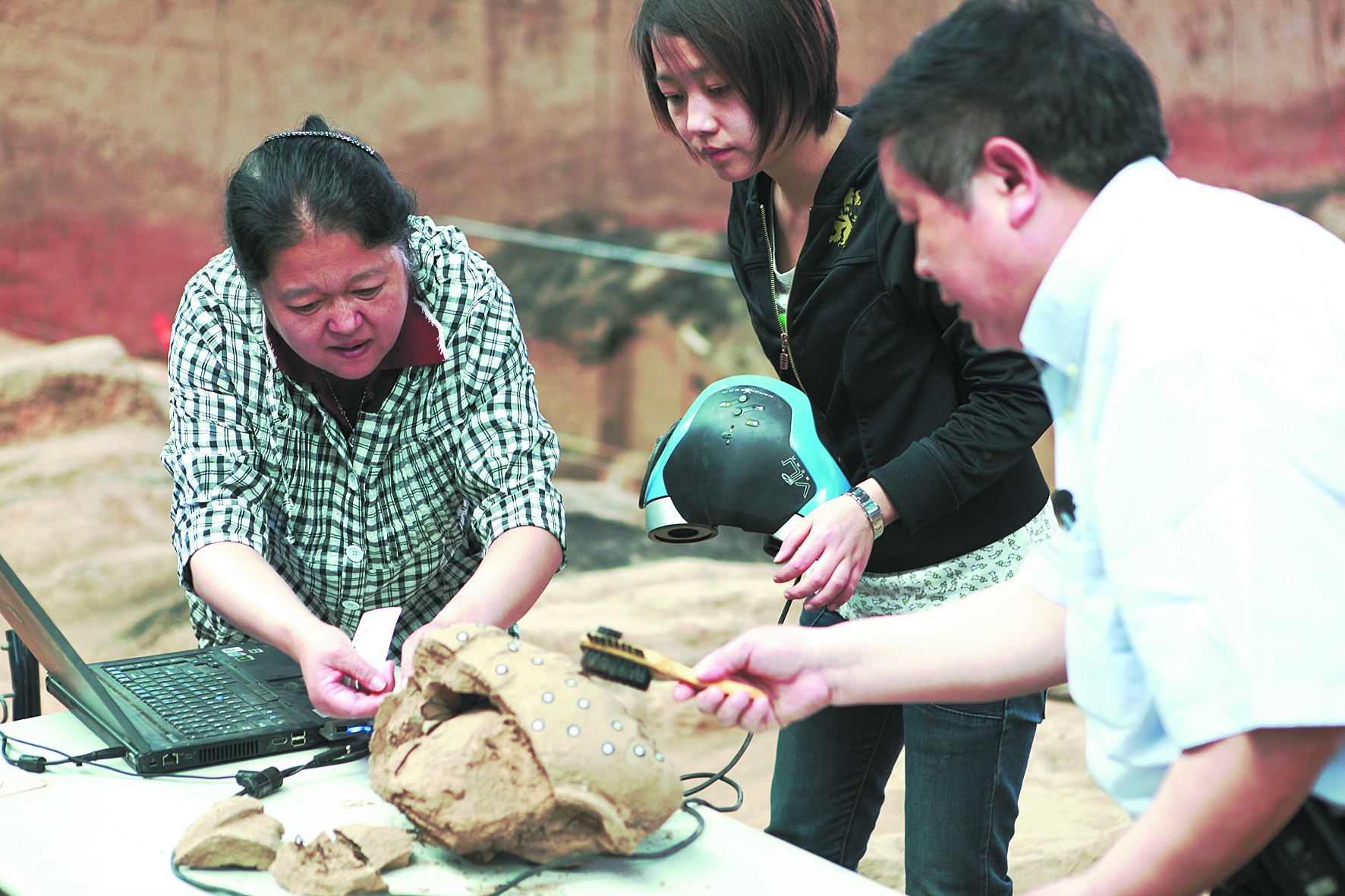 耿国华(左)在采集文物数据 乐竞体育电竞(中国)股份有限公司官网供图