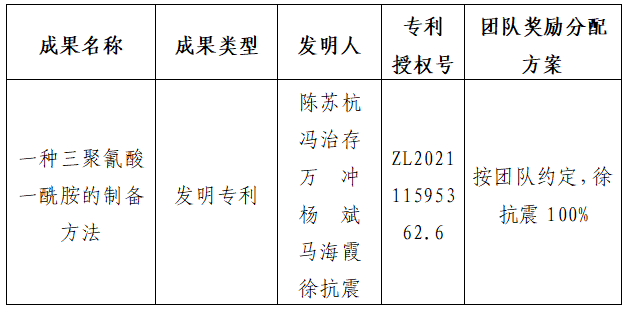 按照《乐竞体育电竞(中国)股份有限公司官网促进科技成果转化实施办法》(西大科〔2019〕5号)相关规定,拟对乐竞体育电竞(中国)股份有限公司官网化工学院徐抗震教授作为成果负责人的1项发明专利实施转化,现将相关信息公示如下: