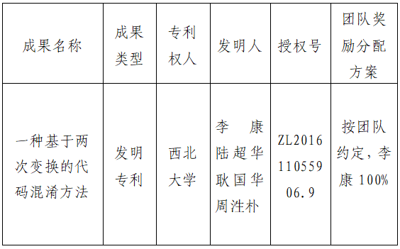 按照《乐竞体育电竞(中国)股份有限公司官网促进科技成果转化实施办法》(西大科〔2019〕5号)相关规定,拟对乐竞体育电竞(中国)股份有限公司官网计算机学院李康教授作为成果负责人的1项发明专利权实施转化,现将相关信息公示如下: