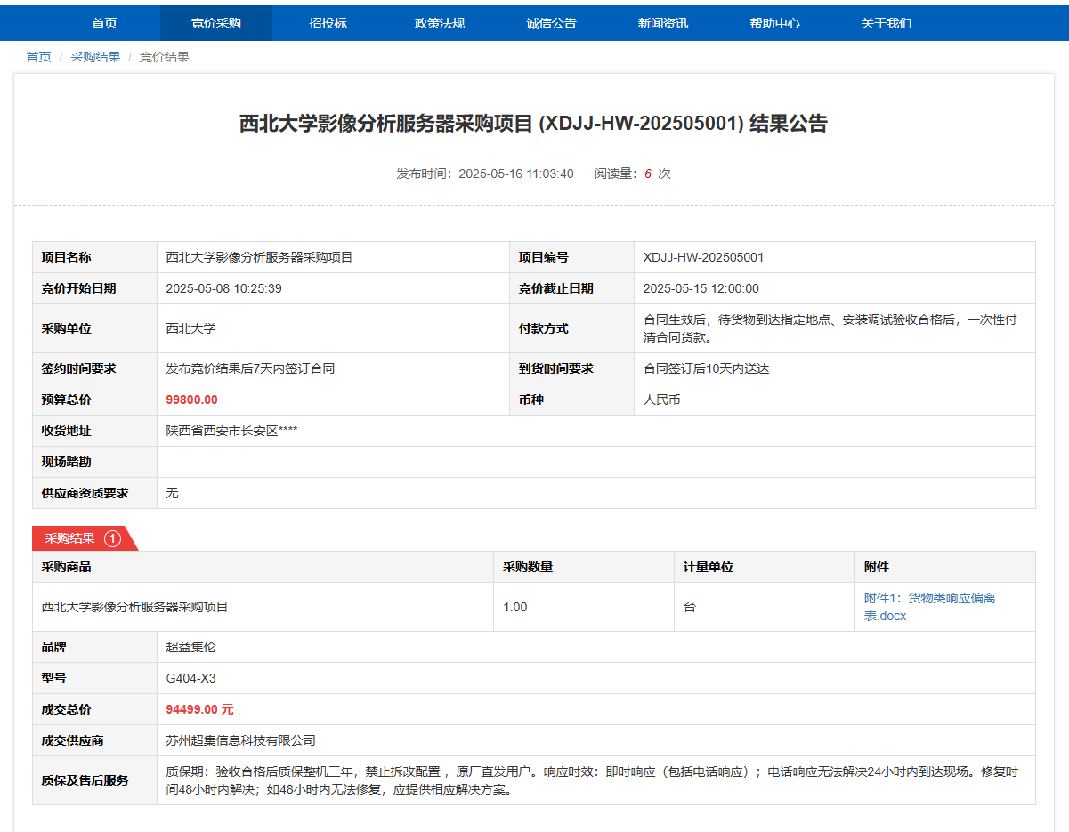 乐竞体育电竞(中国)股份有限公司官网影像分析服务器采购项目(XDJJ-HW-202505001)竞价结果公告 作者:采购与招标办公室 编辑: 时间:2025-05-16 原公告链接:https://www.ejingcai.com.cn/site/bidding/detail/18256