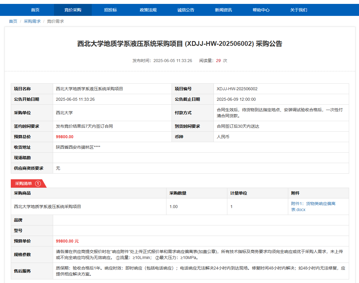 乐竞体育电竞(中国)股份有限公司官网地质学系液压系统采购项目(XDJJ-HW-202506002)竞价采购公告 作者: 编辑: 时间:2025-06-05 原公告链接:https://www.ejingcai.com.cn/site/bidding/detail/18680