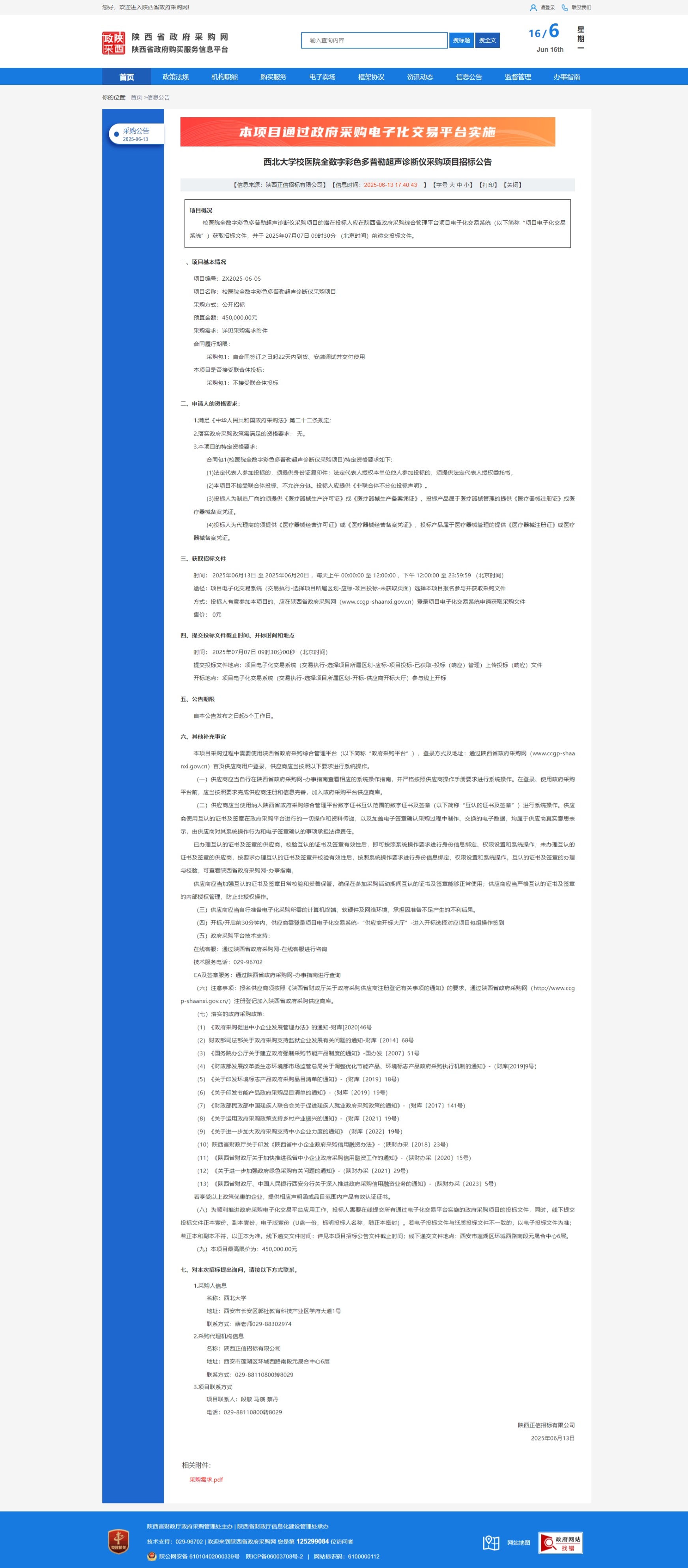 乐竞体育电竞(中国)股份有限公司官网校医院全数字彩色多普勒超声诊断仪采购项目招标公告 作者: 编辑:采购与招标办公室 时间:2025-06-16 原公告链接:https://www.ccgp-shaanxi.gov.cn/freecms/site/shaanxi/ggxx/info/2025/8a69c6749714a43701976892e3823fce.html?noticeType=001011¬iceId=6edbc741-483c-11f0-8063-08c0eb20c666
