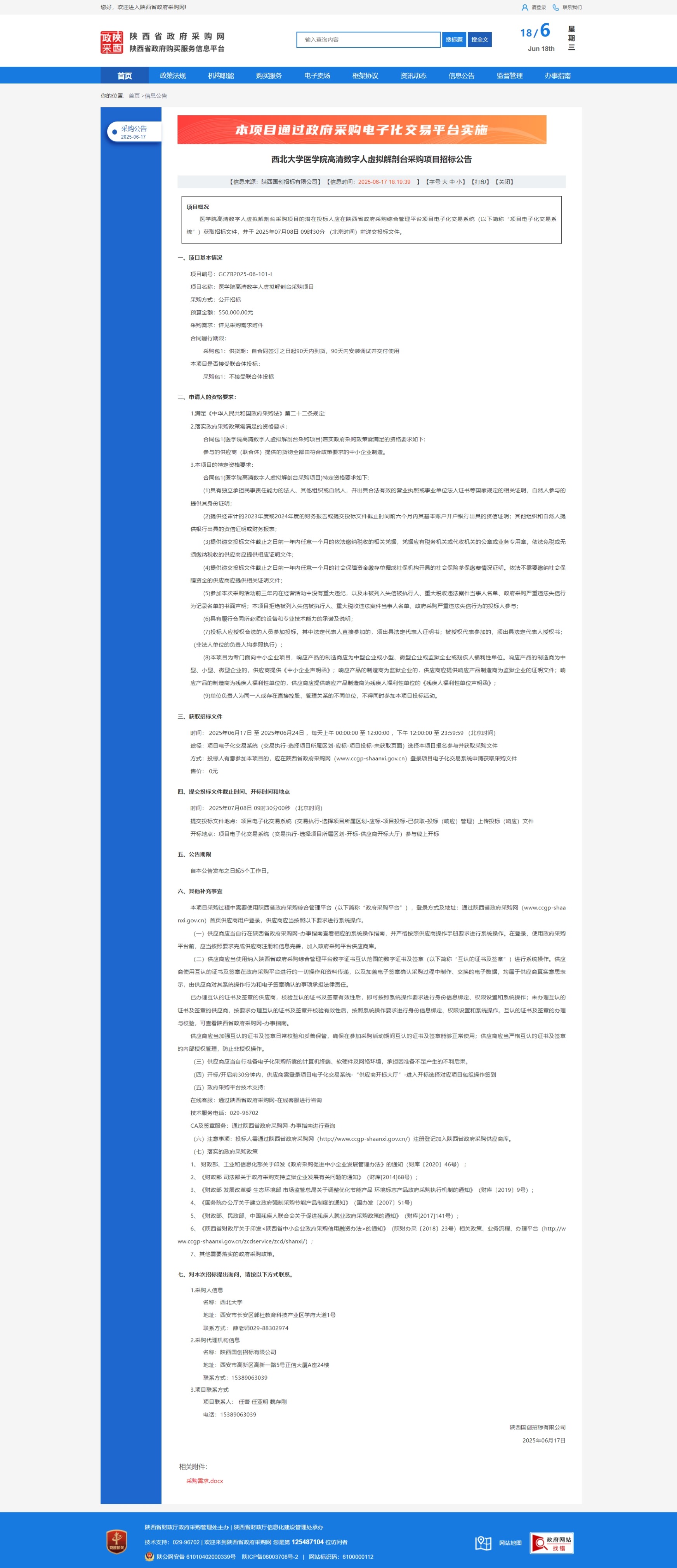 乐竞体育电竞(中国)股份有限公司官网医学院高清数字人虚拟解剖台采购项目招标公告 作者: 编辑:采购与招标办公室 时间:2025-06-18 原公告链接:https://www.ccgp-shaanxi.gov.cn/freecms/site/shaanxi/ggxx/info/2025/8a69c0a29672060001977d5b25b77c33.html?noticeType=001011¬iceId=8a96e29e-4b66-11f0-8063-08c0eb20c666