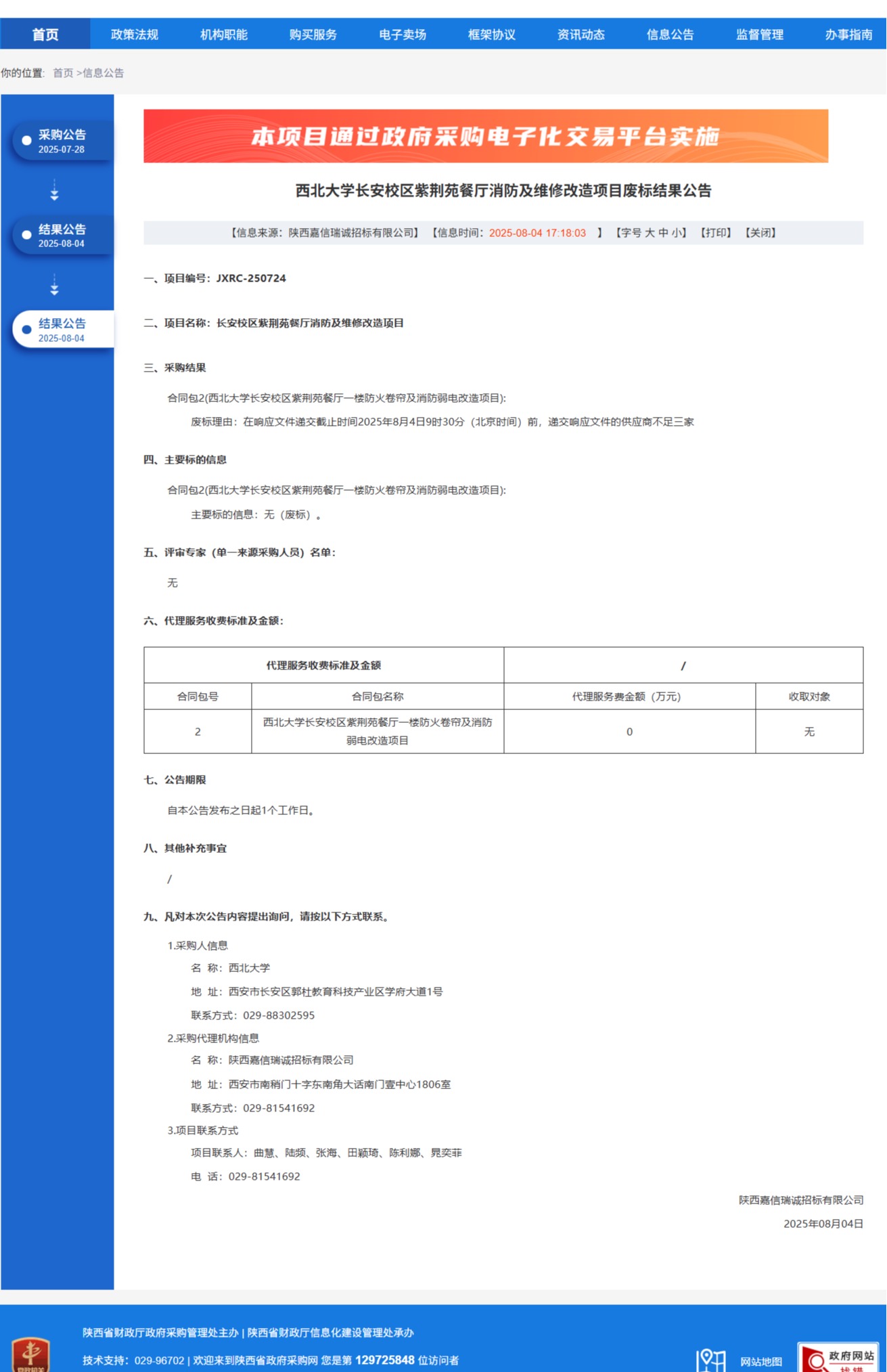 乐竞体育电竞(中国)股份有限公司官网长安校区紫荆苑餐厅消防及维修改造项目废标结果公告 作者: 编辑:党丹珩 时间:2025-08-04 公告地址:http://www.ccgp-shaanxi.gov.cn/freecms/site/shaanxi/ggxx/info/2025/8a69c0c89860f6020198742efac05b51.html?noticeType=001006¬iceId=f838eaa2-7115-11f0-8063-08c0eb20c666