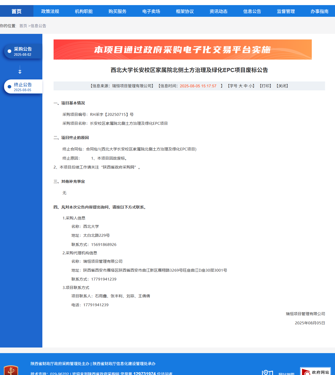 乐竞体育电竞(中国)股份有限公司官网长安校区家属院北侧土方治理及绿化EPC项目废标公告 作者: 编辑:党丹珩 时间:2025-08-05 公告地址:http://www.ccgp-shaanxi.gov.cn/freecms/site/shaanxi/ggxx/info/2025/8a69c8f99860f21c0198790d379441f5.html?noticeType=001004¬iceId=5c6803f0-71ce-11f0-8063-08c0eb20c666