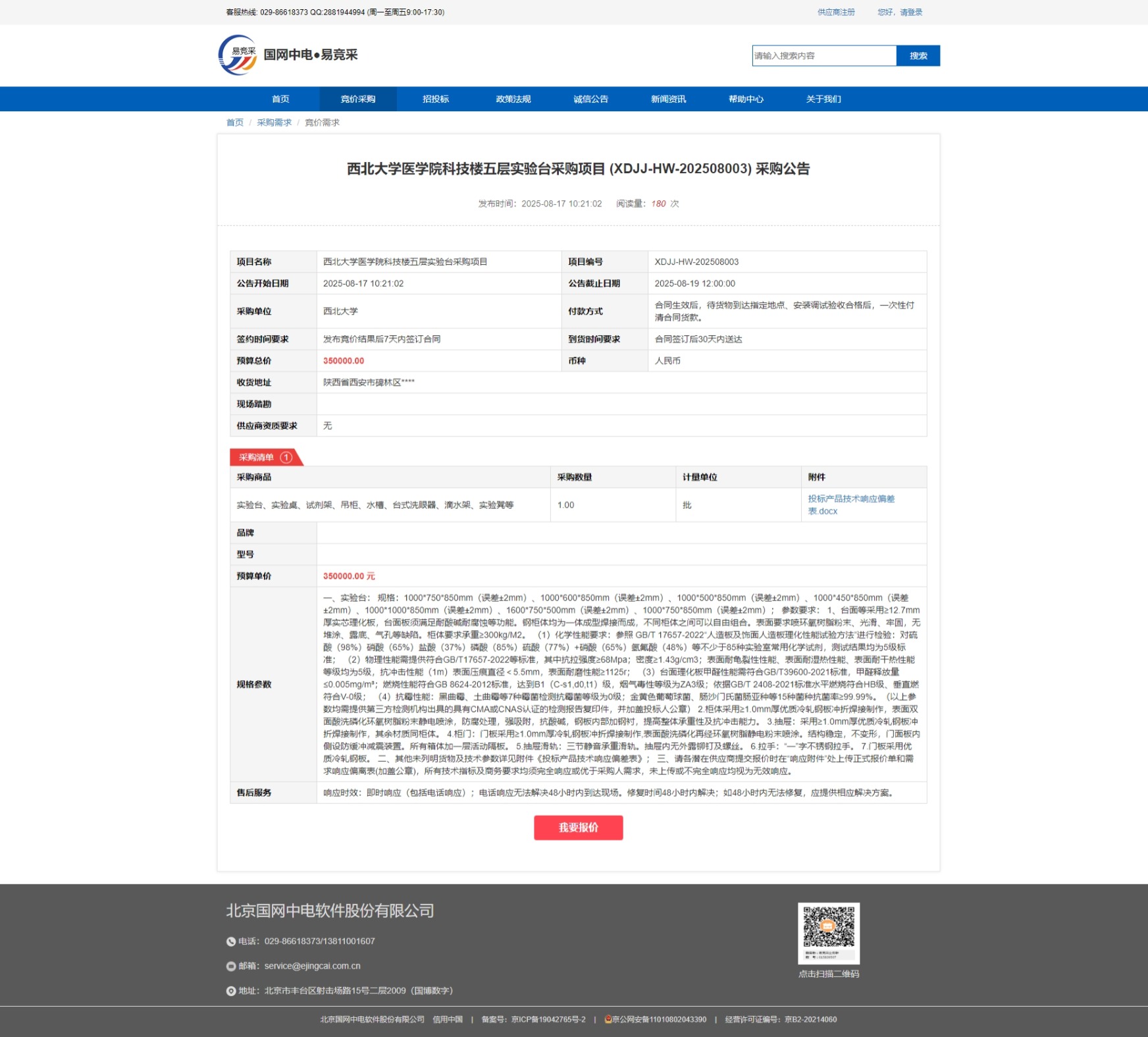 乐竞体育电竞(中国)股份有限公司官网医学院科技楼五层实验台采购项目 (XDJJ-HW-202508003)竞价 采购公告 作者: 编辑:采购与招标办公室 时间:2025-08-18 原公告链接:https://www.ejingcai.com.cn/site/bidding/detail/19996