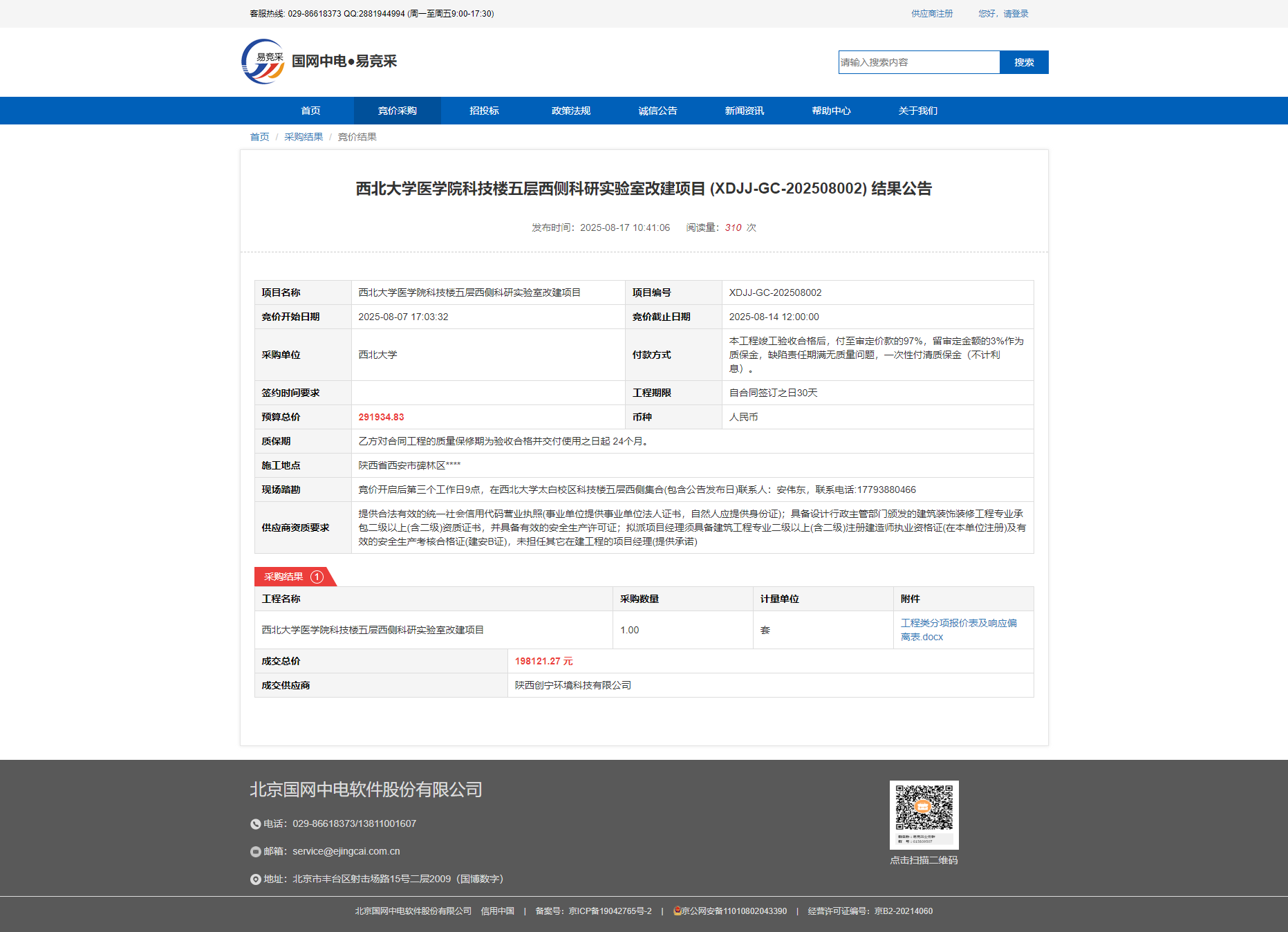 乐竞体育电竞(中国)股份有限公司官网太白校区科研楼公共区域、教学七号楼室内照明设施更换(XDJJ-GC-202508001)竞价结果公告