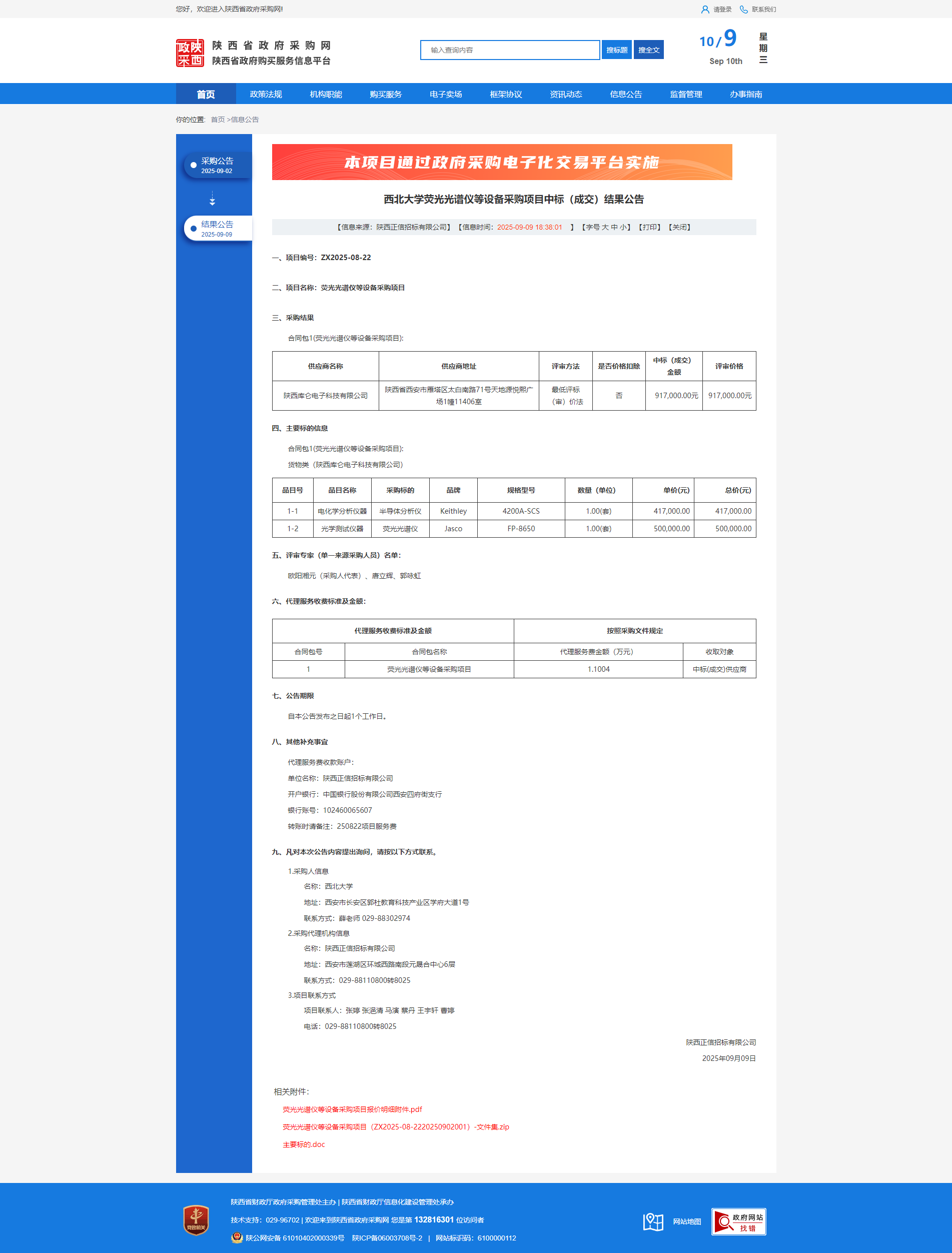 乐竞体育电竞(中国)股份有限公司官网荧光光谱仪等设备采购项目中标(成交)结果公告