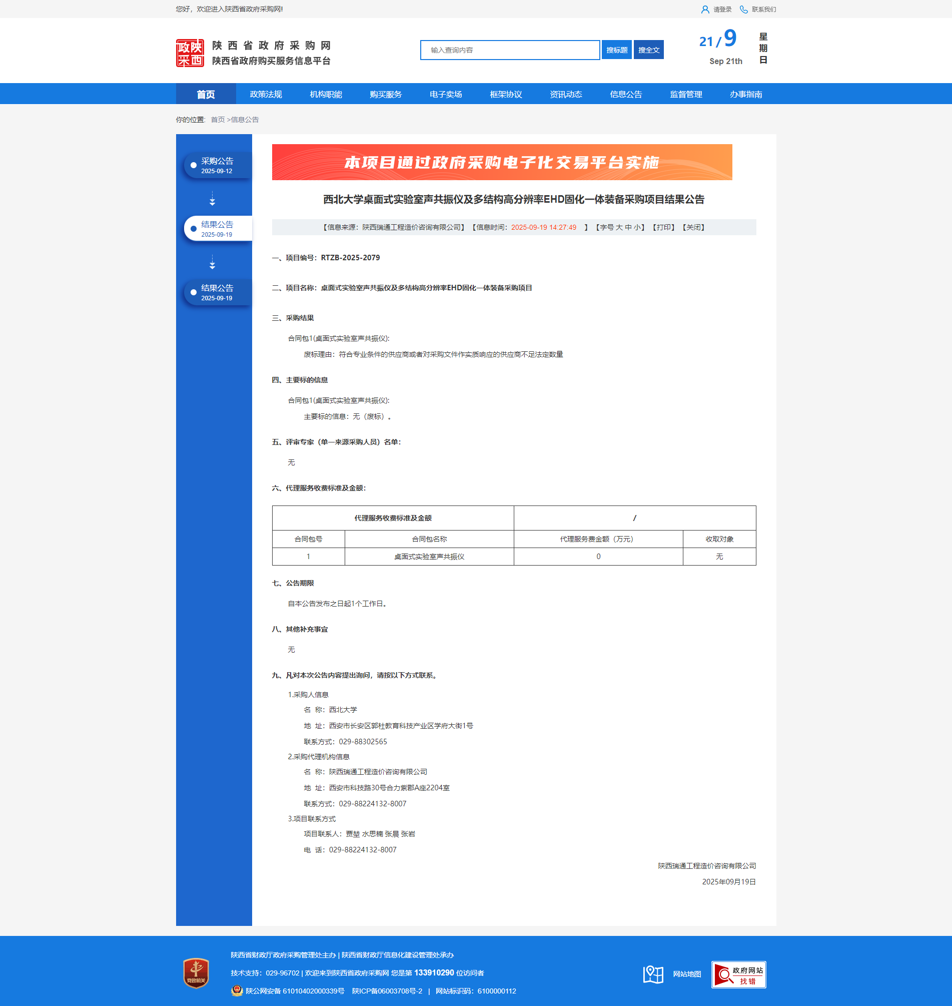 乐竞体育电竞(中国)股份有限公司官网桌面式实验室声共振仪及多结构高分辨率EHD固化一体装备采购项目中标(成交)结果公告