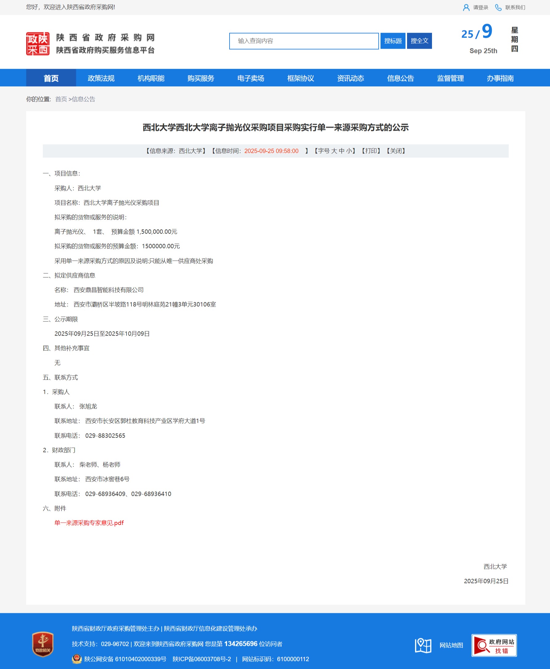 乐竞体育电竞(中国)股份有限公司官网离子抛光仪采购项目实行单一来源采购方式的公示
