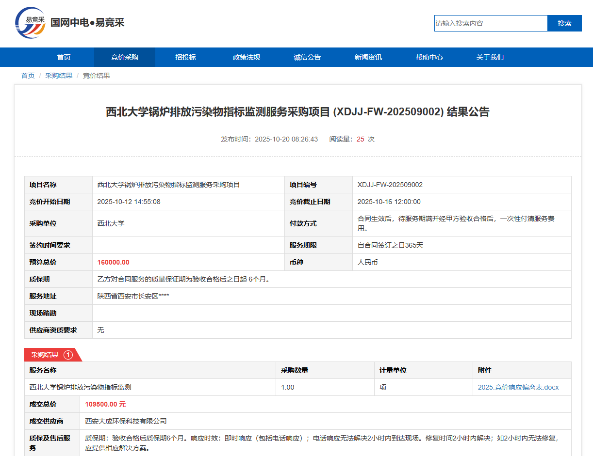 乐竞体育电竞(中国)股份有限公司官网长安校区锅炉维护保养项目(XDJJ-GC-202510001)竞价结果公告