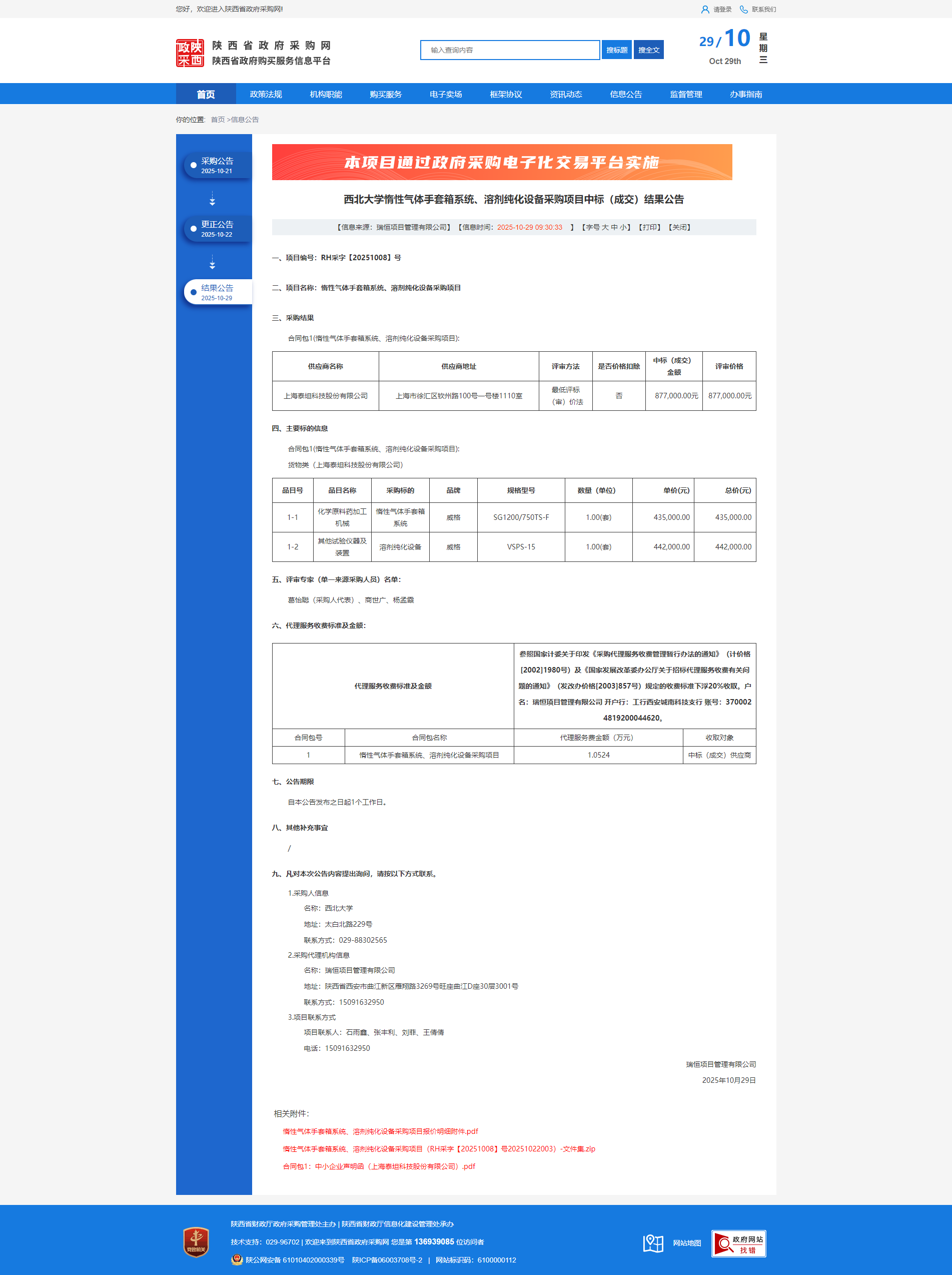 乐竞体育电竞(中国)股份有限公司官网惰性气体手套箱系统、溶剂纯化设备采购项目中标(成交)结果公告