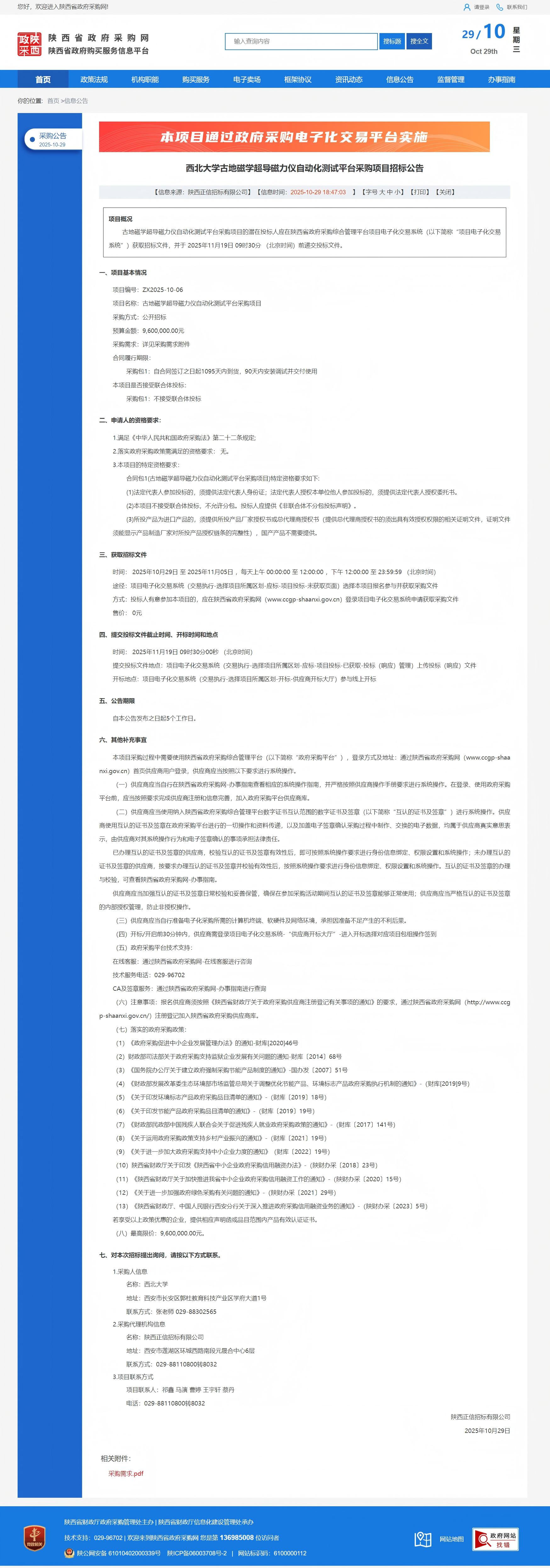 乐竞体育电竞(中国)股份有限公司官网古地磁学超导磁力仪自动化测试平台采购项目招标公告